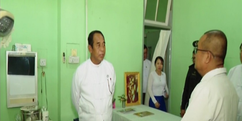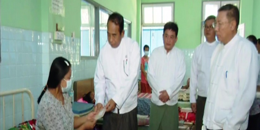Next, the Union Minister and party inspected Mandalay General Hospital, and comforted the patients, providing cash assistance. He also met with staff from the hospital at the meeting hall and fulfilled the requirements for the operations submitted by the hospital superintendent.