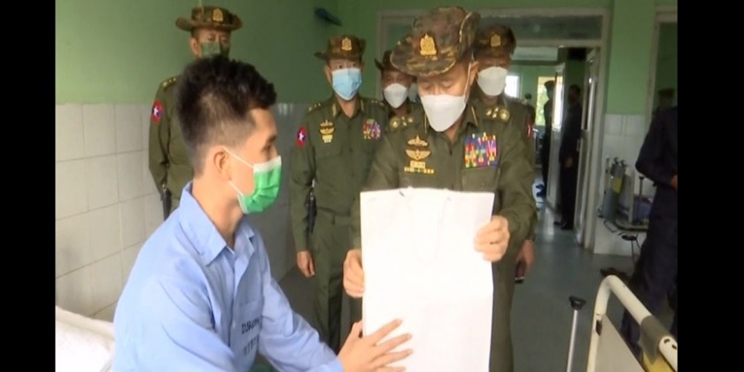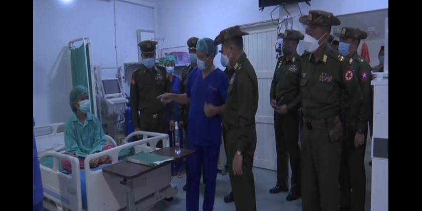 The Vice Senior General and party later proceeded to Defence Services Liver Hospital and observed the condition of two patients who received the very first liver transplanting at the defence services hospital. The operation was conducted on September 27th and 28th in commemoration of the 75th anniversary Diamond Jubilee Medical Corps Day. The honorary cash rewards were also presented to the professors and medical officers who performed the liver transplant operation successfully.