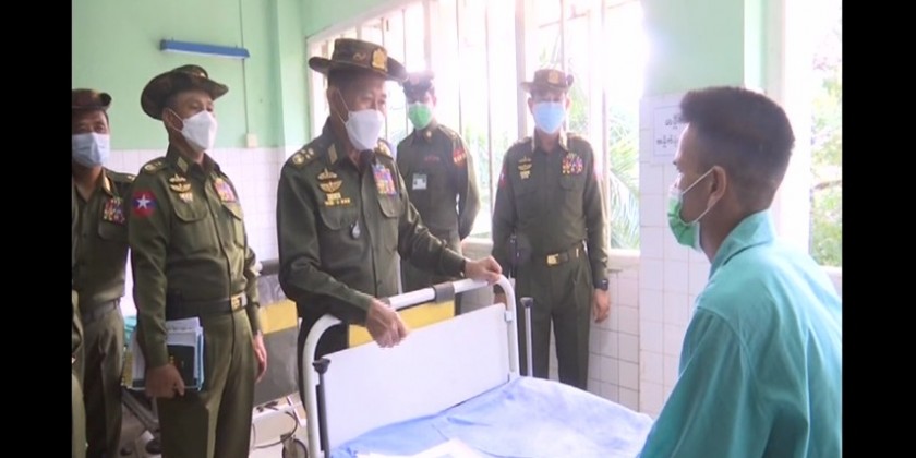 Vice Chairman of the State Administration Council Deputy Commander-in-Chief of Defence Services, Commander-in-Chief (Army) Vice Senior General Soe Win, together with the senior military officers from the Commander-in-Chief’s Office and Yangon Command Commander, visited Defence Services Orthopedic Hospital (500-Bedded) and the Defence Services General Hospital (1000-Bedded) on Friday.