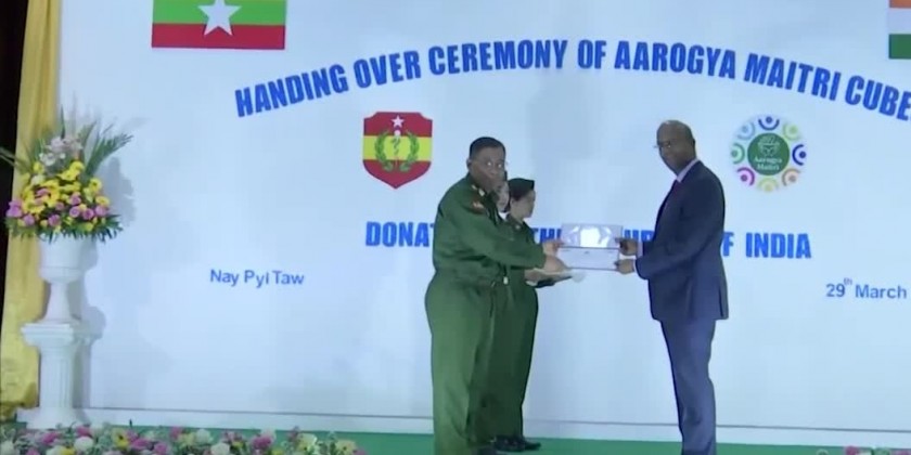 2 pairs of Aarogya Maitri Cubes donated from India to Myanma Tatmadaw was handed over to 1000-bed Military Hospital in Nay Pyi Taw on Friday.