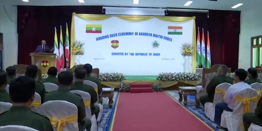 During the ceremony, a video clip featuring the information related to Aarogya Maitri Cubes was screened. Indian Ambassador to Myanmar Mr. Vinay Kumar clarified the purpose of the donation, followed by the words of gratitude by Adjutant General, Lt-Gen Soe Min Oo.