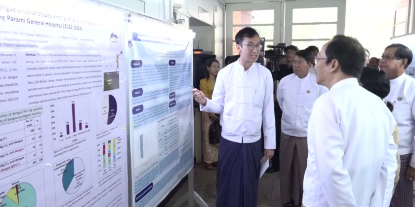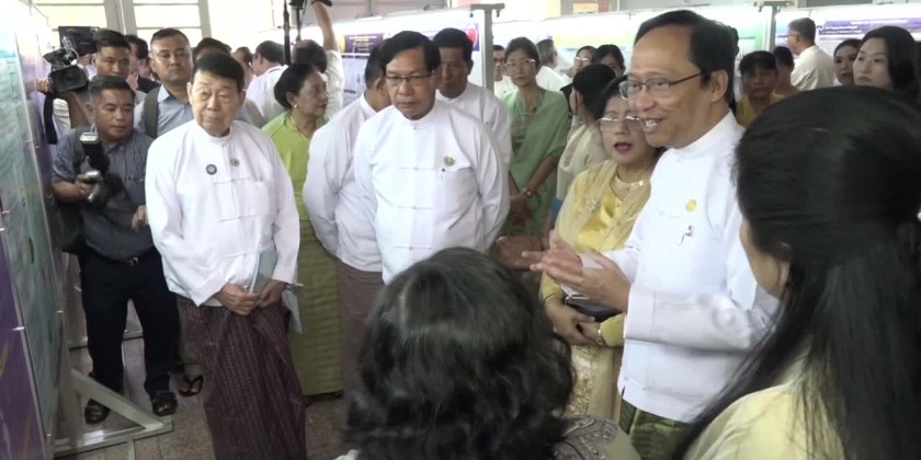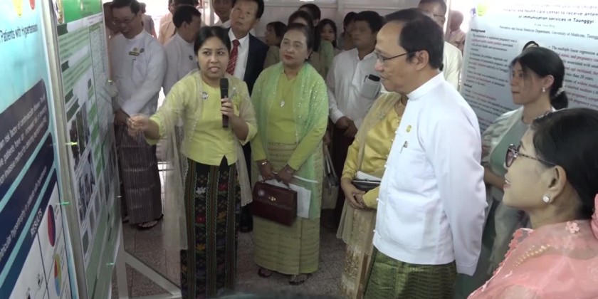 After the opening ceremony, Union Minister Professor Dr. Thet Khin Win, Yangon Region Chief Minister U Soe Thein, Region Government Ministers, and health researchers, as well as key researchers who will present their papers, visited the research poster exhibition.