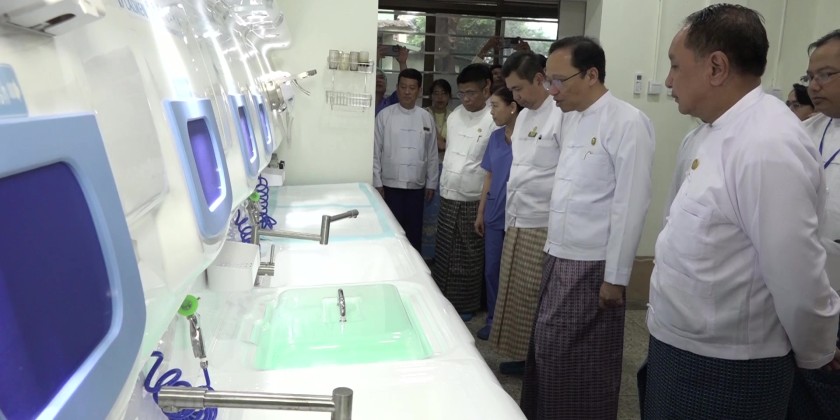 In the afternoon, the Union Minister and officials overviewed the Colonoscopy treatment process at the Department of Gastroenterology of Yangon General Hospital. Colonoscopy treatment project is jointly conducted by 12 specialists from Myanmar and 7 specialists from Thailand, India and Indonesia and a total of 11 patients are already completed the treatment successfully.