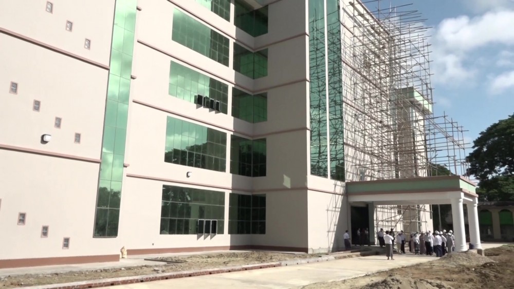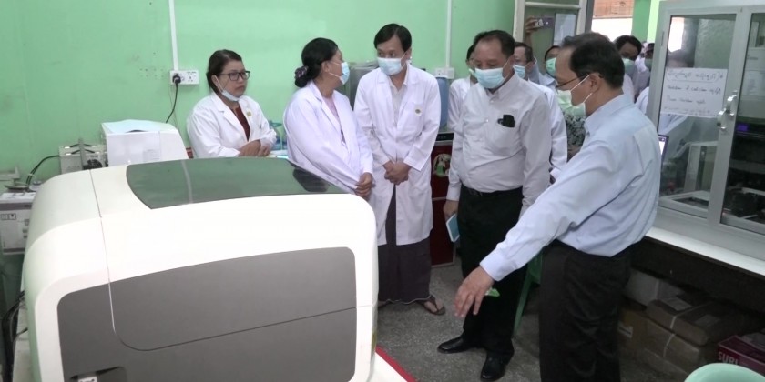 During their inspection at the People’s Hospital (Pyay), the Union Minister heard reports on the construction works of 5-story building in the compound of the hospital. He then instructed to set up quality processes in construction and to make arrangements for convenience of the patients. They later inspected the operation processes of X-ray Room and laboratory.