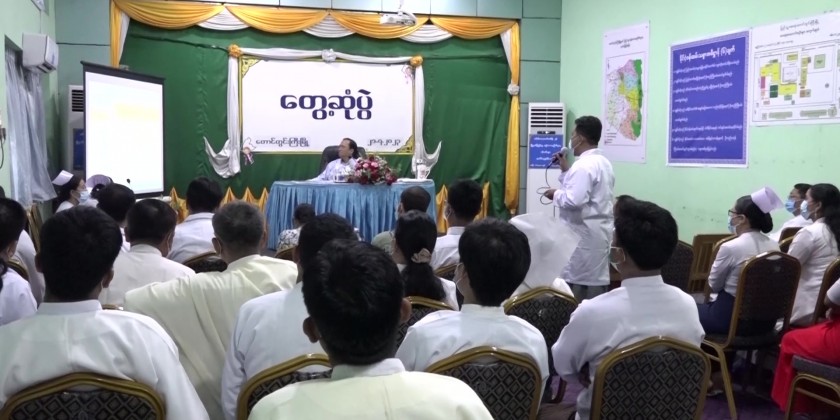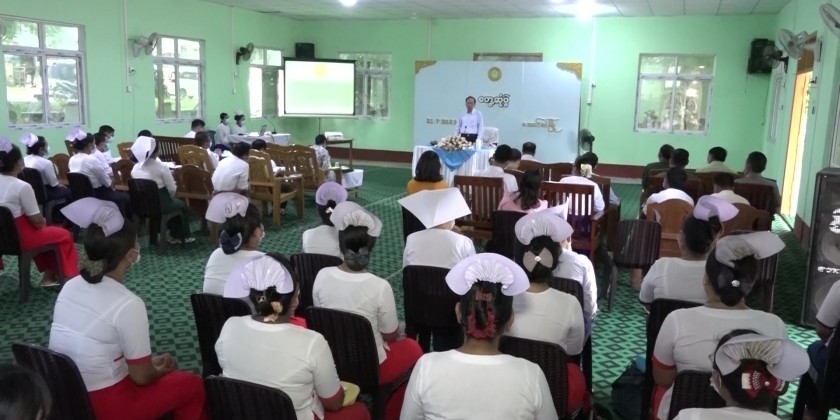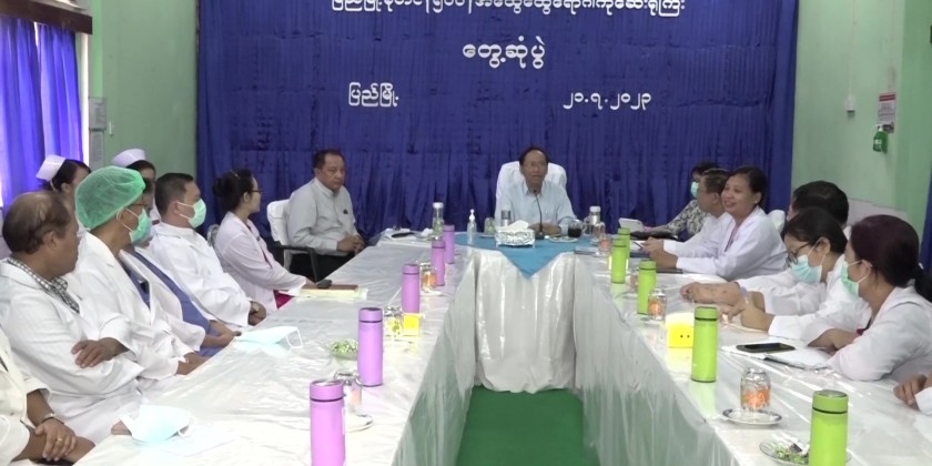 On arrival at the People’s Hospital (Aung Lan), the Union Minister met with the doctors, nurses and health staff, and gave necessary instructions. The Aung Lan Township Medical Officer reported on providing health care and treatment measures, and the Union Minister fulfilled the needs.