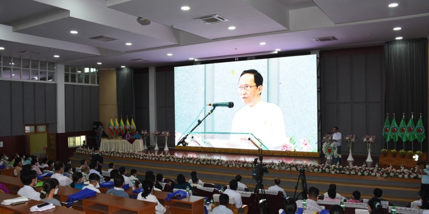 The Union Minister and party later attended the opening ceremony of Recreation Centre at the University of Medicine (Mandalay). After formal opening of the ceremony, the Union Minister made a speech, and urged officials to promote research works and international cooperation. The Union Minister later attended the opening ceremony of new 6-storey building at Nursing University (Mandalay), and made a speech.