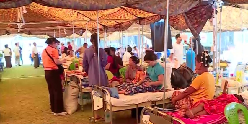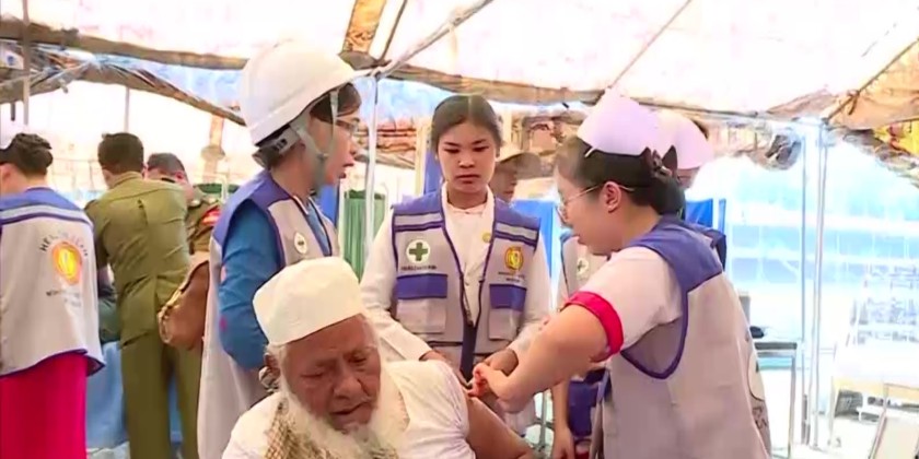 Health staff from Myanmar Army Medical Corps in collaboration with the health care workers and engineers from the Kingdom of Bhutan are providing health care assistance to the victims affected by the severe earthquake that struck on March 28.