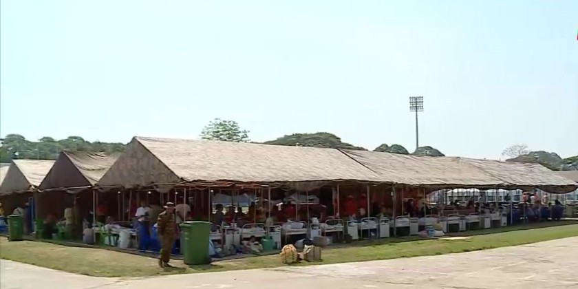 To provide health care assistance to earthquake victims, 50-bed temporary hospital is opened at Paunglaung Stadium in Nay Pyi Taw.