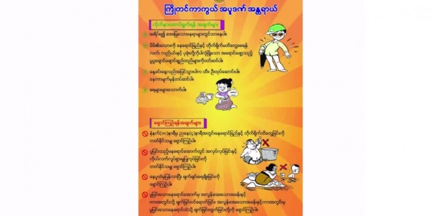 Director, Department of Public Health (MOH), Dr.Than Naing Soe said “If you are sweating a lot, you need to drink water more and minerals. If you appear itchy rashes on your skin, you can apply a cold, wet cloth or ice pack to the skin that itches and also can apply Thanakha. If the people who suffer heat wave, those who need to stay under shady places and in good ventilation and to drink water and mineral. To reduce the body temperature, you should have to give yourself a sponge bath with cool water, focusing on high-heat areas like forehead, armpits and groin.”