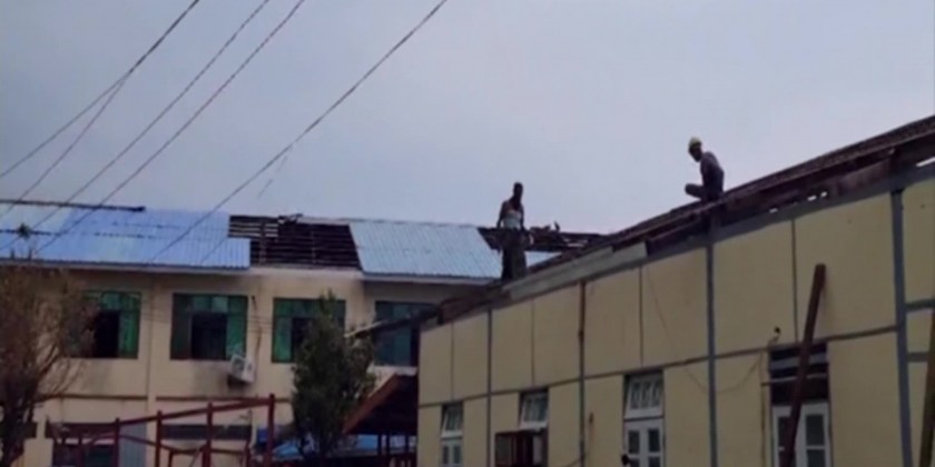 Union Minister for Health Dr. Thet Khaing Win inspected the cleaning of the garbage and reconstruction of damaged buildings in the campus of the Nursing School in Sittway of Rakhine State.
