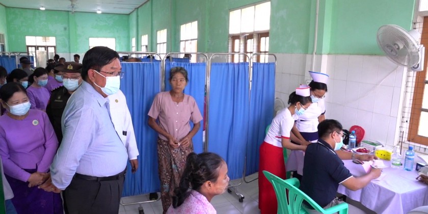 Magway Region Chief Minister U Tint Lwin on Saturday oversaw healthcare services provided by healthcare workers from the Minbu People’s Hospital at the Saku People’s Hospital to those from Saku Township and nearby areas free of charge.