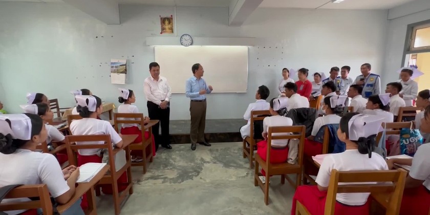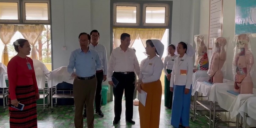 On the same day, the Union Minister and party visited the Sittwe Nursing and Midwifery Training School and Traditional Medicine Hospital, inspected completion of rehabilitation works and fulfilled the needs.
