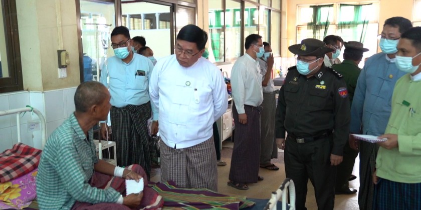 Also, at the Magway Teaching Hospital, the Chief Minister gave necessary instructions to the medical superintendent and healthcare officials, nurses and staff and provided cash assistance of 1 million Kyats to the healthcare officials, nurses and staff.