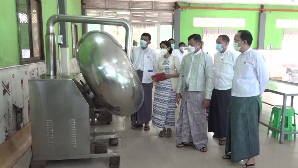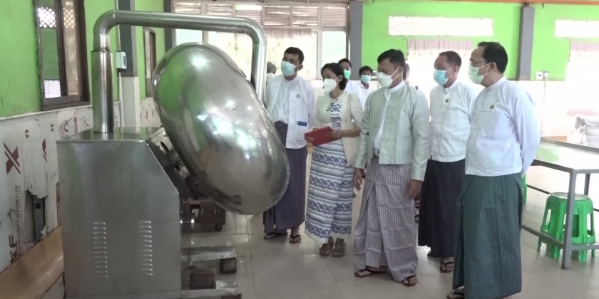 Union Minister for Health Professor Dr. Thet Khaing Win inspected the Monywa Saya Moe traditional medicines manufacturing factory in KyoeKone Village of Hlegu Township.