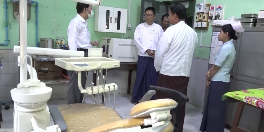 There, the Union Minister inspected the new 2-storey building construction site and fulfilled the requirements. And, he inspected the laboratory, x-ray Department, Department of Oral and Maxillofacial Surgery, theater, treatment ward, medicines storage rooms and medicines.