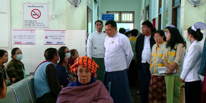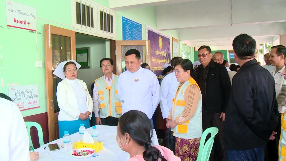 Shan State Chief Minister U Aung Zaw Aye, State Ministers, State Attorney General, and other officials inspected the process of healthcare services provided by medical professors from the Yangon General Hospital and Yangon Specialty Hospital (500 Bedded) under the supervision of Ministry of Health at the Sat San Tun Hospital in Taunggyi in Southern Shan State on Tuesday.