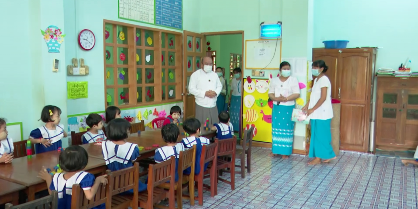 The Deputy Minister also inspected the children learning at the schools and the school environs. He also instructed to make precaution measures for insects and to provide nutritious foods. The Deputy Minister also urged to make constant training for turning out of the Pre-school teachers to spread the pre-school teaching method to the wards and villages.