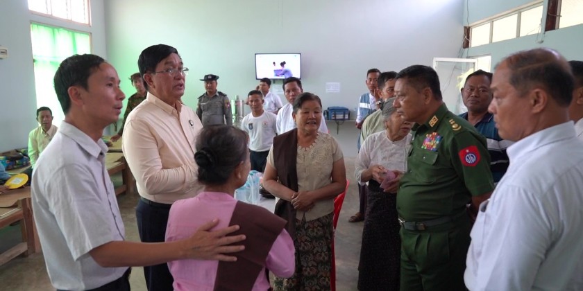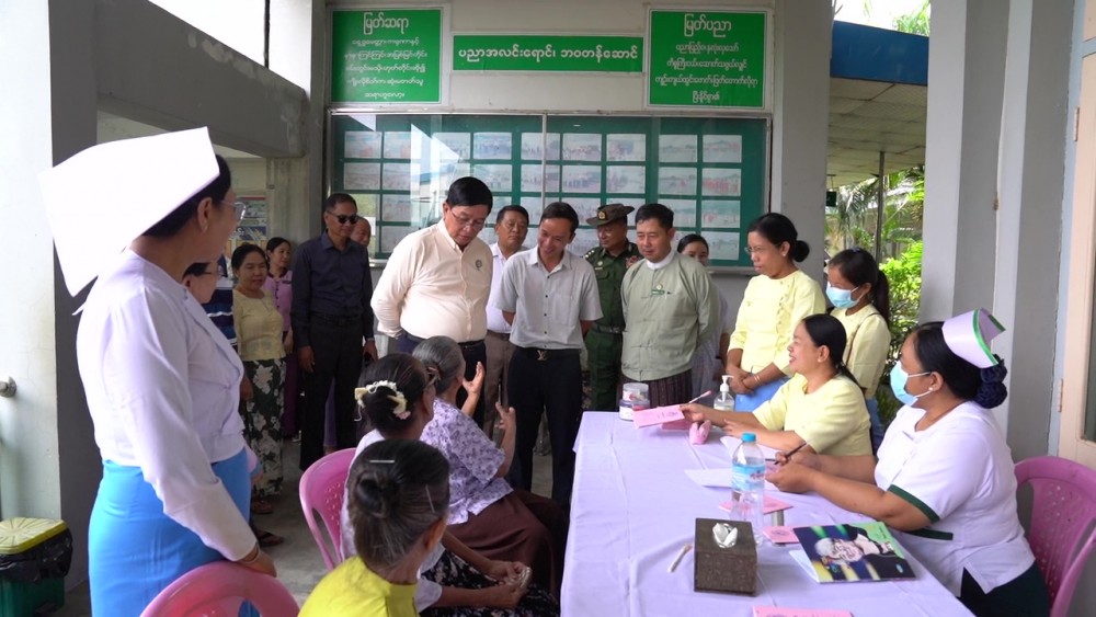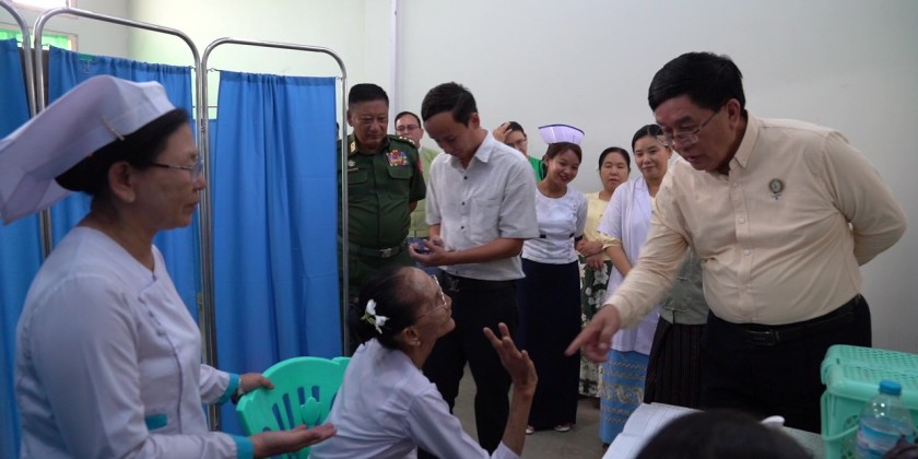 Magway Region Chief Minister U Tint Lwin together with the Region Ministers and Region/District/Township level officials, in the morning on 5th May, inspected the status of opening heat shelter for older persons from the words of Minbu Township at Pyinnya Ahlinyaung private high school.