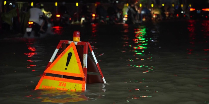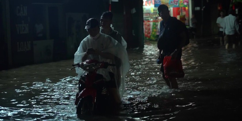 Prolonged heavy rains triggered by Typhoon Bualoi’s circulation have inundated many streets in Hà Nội since early Tuesday morning. Until the evening, heavy downpours continue to batter the city, leaving many already flooded streets submerged even deeper.