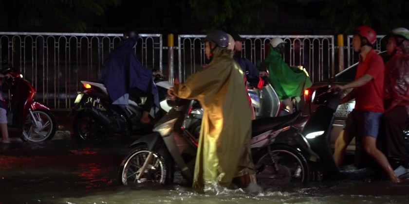 The floodwater has made it nearly impossible for the traffic, forcing people to wade through deep water of more than half a meter. Since early morning, the flooding has led to at least 65 submerged locations in Hanoi, near the University of Electricity. Highest rainfall was recorded at 2:30 pm local time on Tuesday.