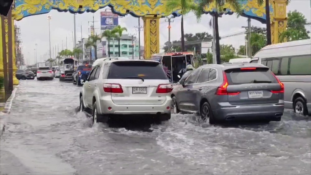 Severe flooding has hit parts of Samut Prakan province and Pattaya city in Thailand following heavy rainfall and high tides.