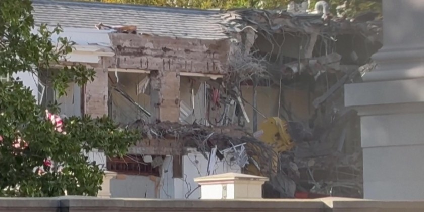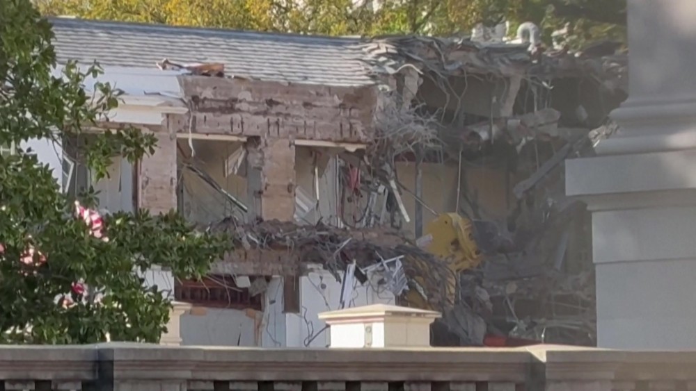 Trump has said that the ballroom will be built entirely with private money. It includes $22 million from a settlement with YouTube in September. Trump opened the curtains of the East Room to show guests where work has started on the giant ballroom, the biggest addition to the White House in more than a century.