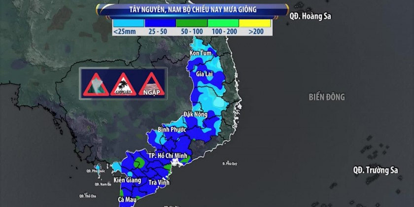 Additionally, thunderstorms with localized heavy rainfall exceeding 80 mm are expected in the Central Highlands and southern Vietnam on Saturday afternoon, with warnings of flooding, hail, lightning, and strong gusts of wind issued.