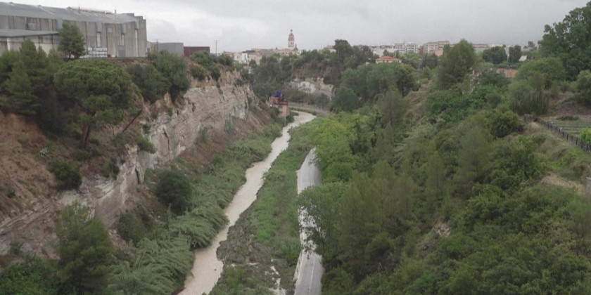 The village is located on the banks of the Clarianoriver, near which vegetation was flattened and traffic cones bent out of shape by high rushing waters. "There are blocked streets, landslides, some schools have flooded and have had to suspend classes" says an Ontinyent resident. "