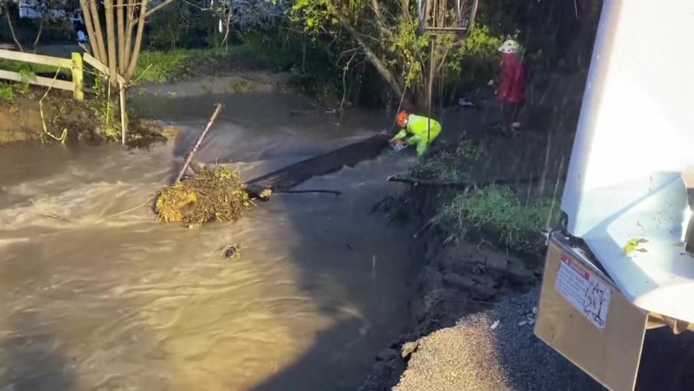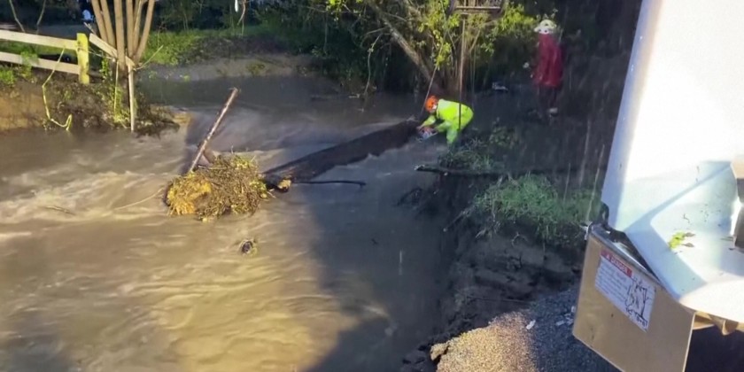 Evacuations were ordered Friday in Northern California after a new atmospheric river brought heavy rain, thunderstorms and strong winds, swelling rivers and creeks and flooding several major highways during the morning commute. In Santa Cruz County, a creek bloated by rain destroyed a portion of Main Street and isolated several neighborhoods in Soquel, a town of 10,000 people.