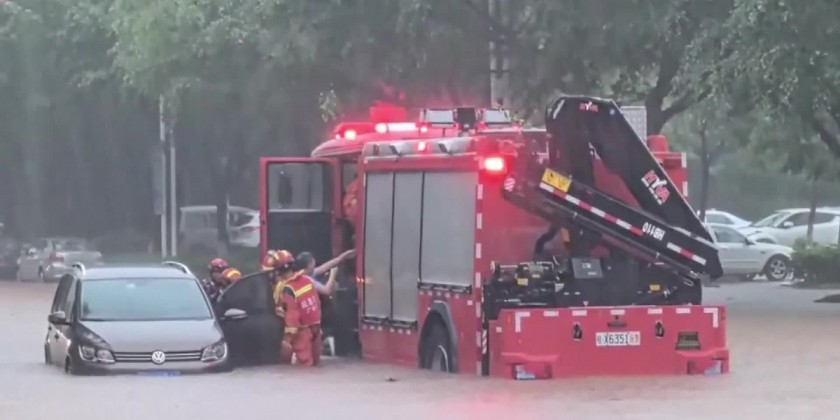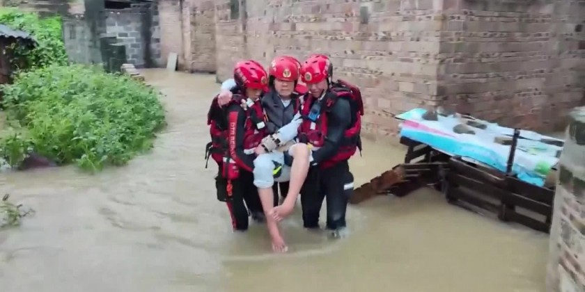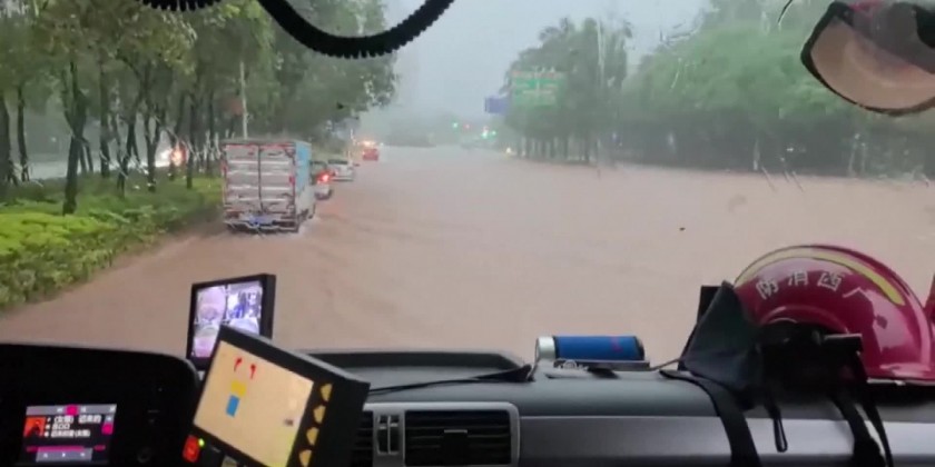 In Yulin City, the water level at an intersection rose significantly on Wednesday morning, triggering a prompt response from rescue teams. They quickly evacuated stranded people and vehicles to safety using fire trucks. Since Sunday, heavy rainfalls have brought floodwater up to 2.23 meters above the warning level to 11 rivers in Guangxi.