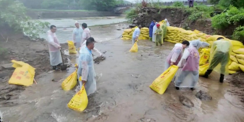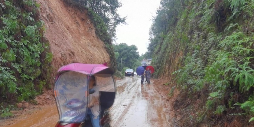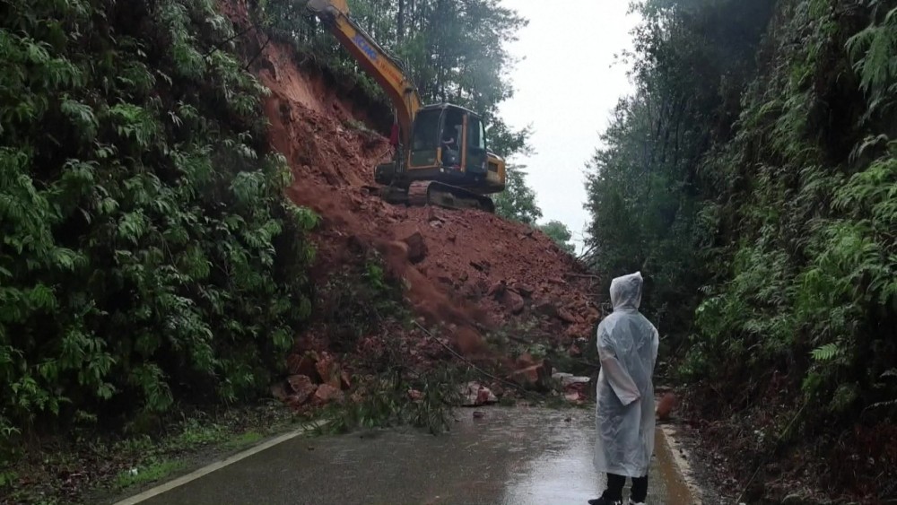 Torrential rains triggered a landslide in Yugan County of Jiangxi Province, China on Tuesday, blocking a road with over 700 cubic meters earth. Local officials and staff members from emergency departments rushed to the site and deployed personnel and excavators to clear the earth from the road.