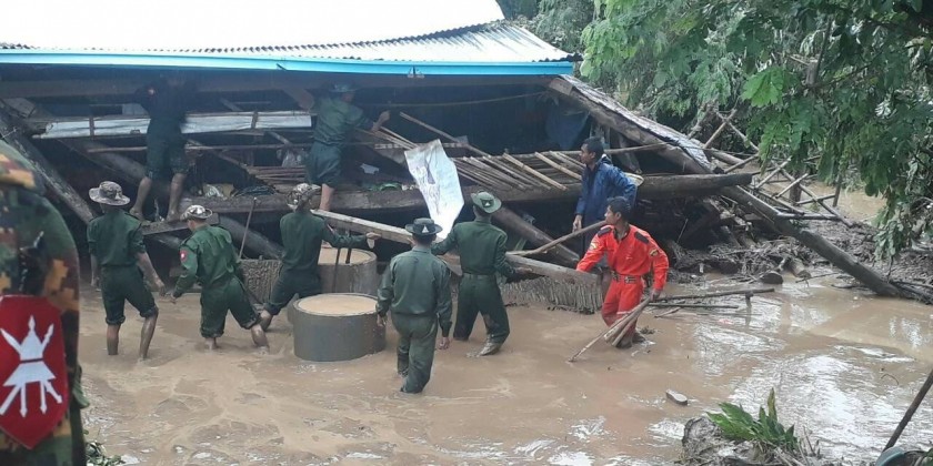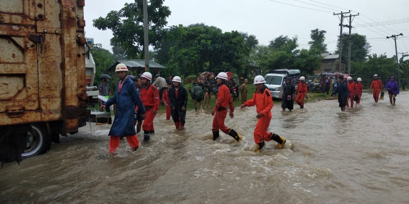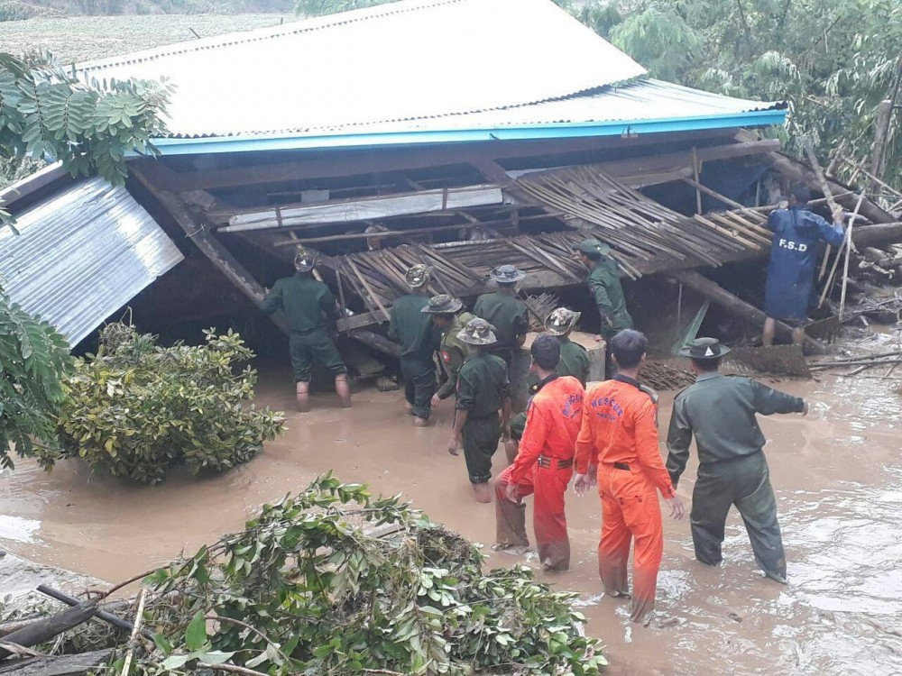 A bailey bridge and 11 houses in Nyaungwon Village of the township were swept away by floods after the heavy rains – also, 6 houses were destroyed. Search and rescue operations are underway.