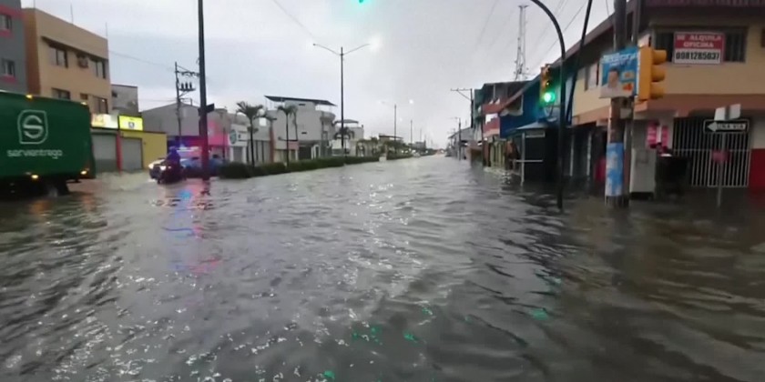 Heavy rains that followed Cyclone Yaku have flooded properties and roads in the Ecuadorian city of Guayaquil. The downpours caused the Guayas River to burst its banks, causing widespread flooding in the port city. Residents in nearby Puerto Bolivar were also affected by the deluge.Officials say that heavy rains this winter season have killed at least 21 people and left 23,000 homeless.