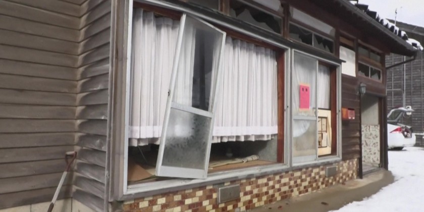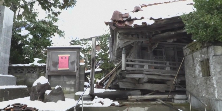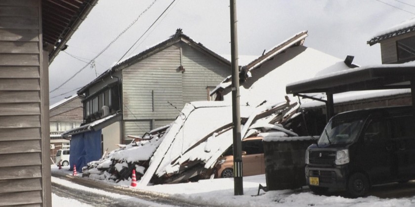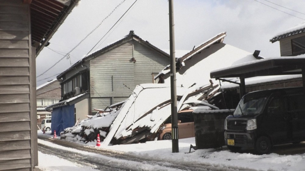 Heavy snow falls on quake-hit Japanese town