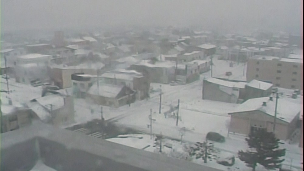 Heavy snow knocked down an electric power transmission tower in Japan’s northernmost main island at one point left about 20,000 homes without power on Christmas morning, though electricity was restored in most areas later that day, according to the economy and industry ministry.