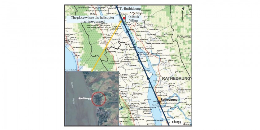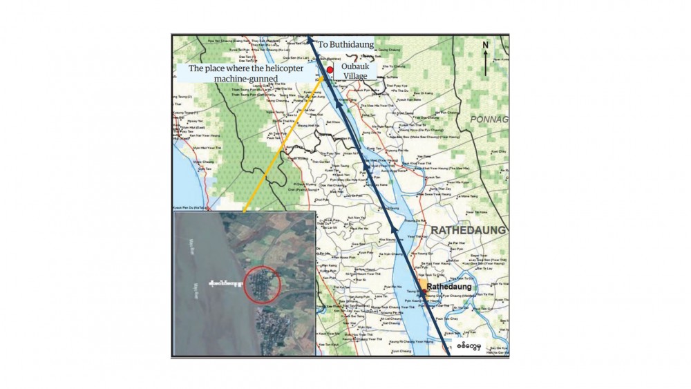 Because of the adverse weather, the helicopter was flying low, and although it was hit by machine-gun fire, it managed to land in Kha Mway Chaung Village.