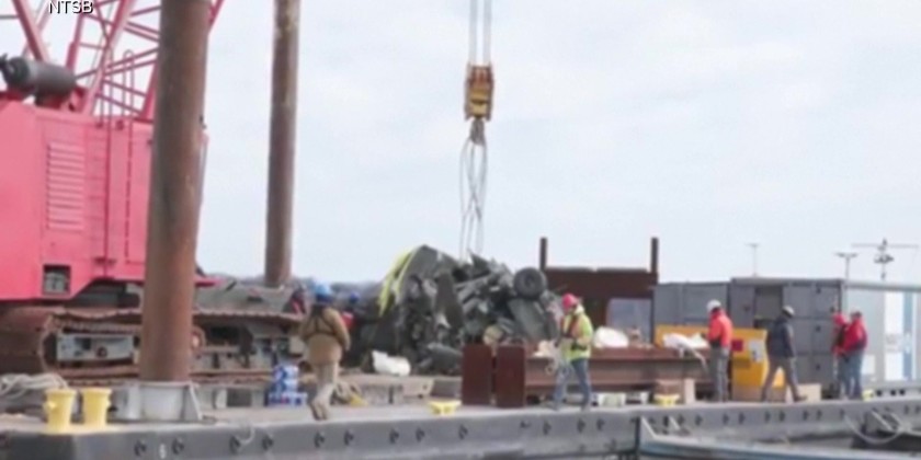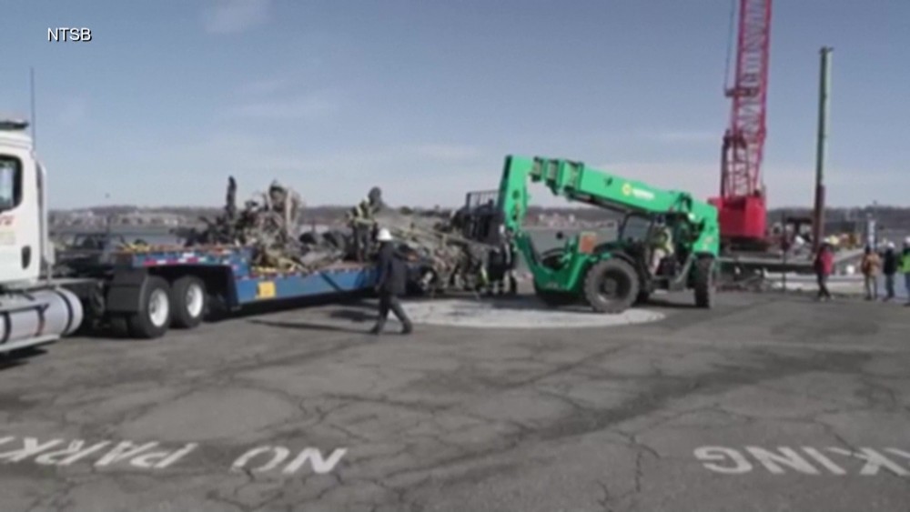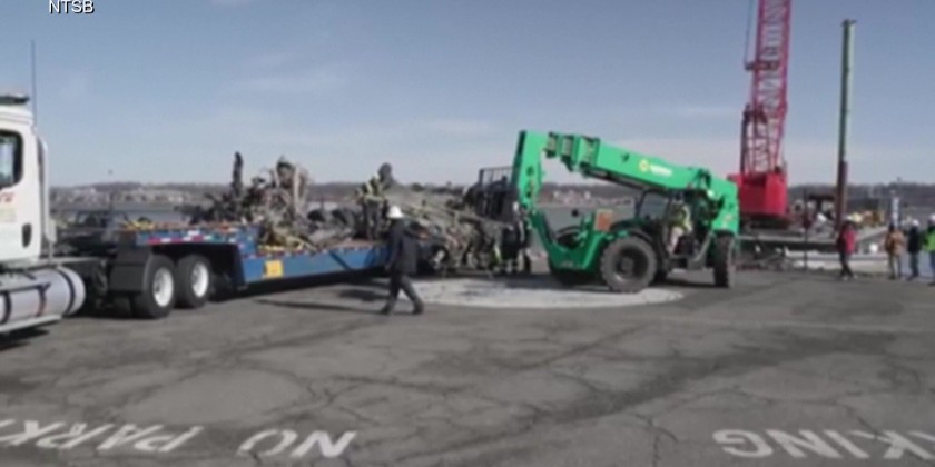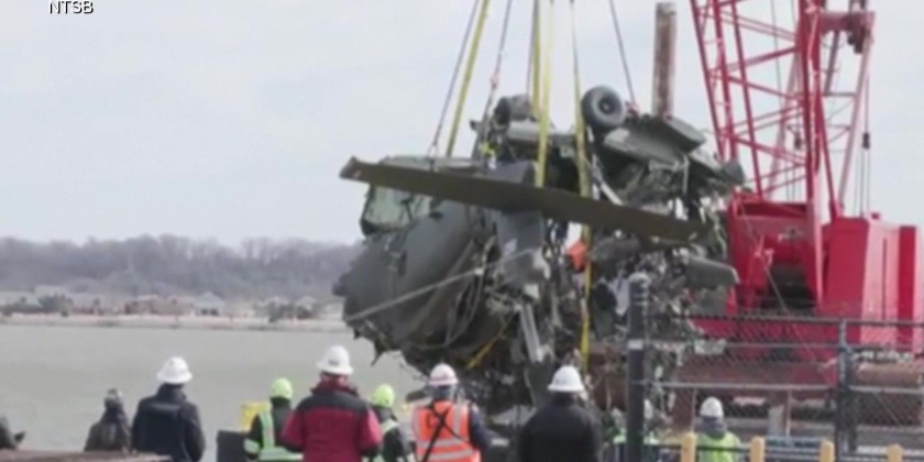 The National Transportation Safety Board (NTSB) released video on 7th February of its crews recovering Black Hawk helicopter wreckage. The Black Hawk was involved in the Jan. 29 collision with a plane, killing over 60 people. Pieces of the wreckage were placed on a barge. Investigators have said that black boxes have already been obtained.