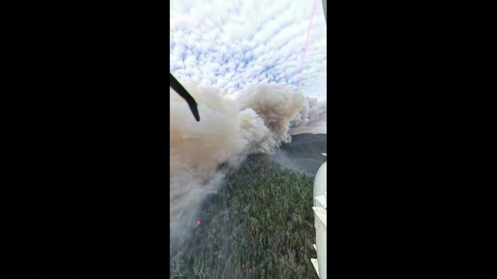 Australia's NSW Rural Fire Service show a first-person view from a helicopter circling over the Brassknocker Fire, which is burning in remote terrain on the NSW Far South Coast.