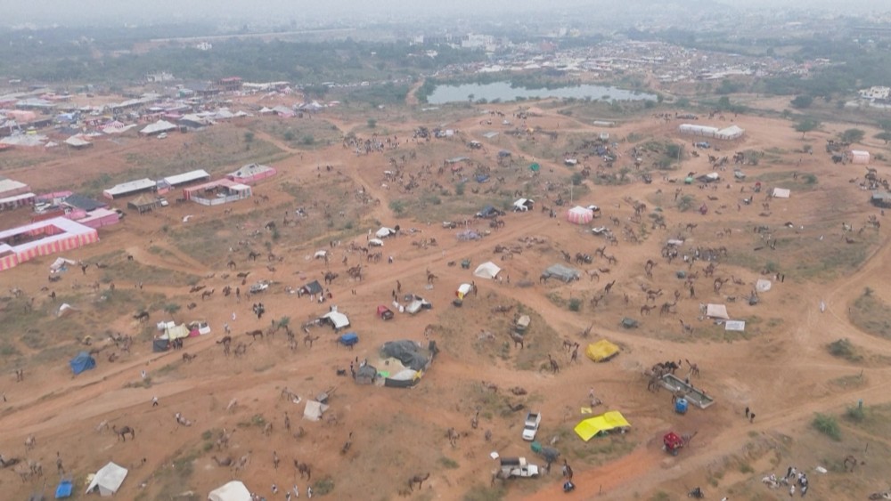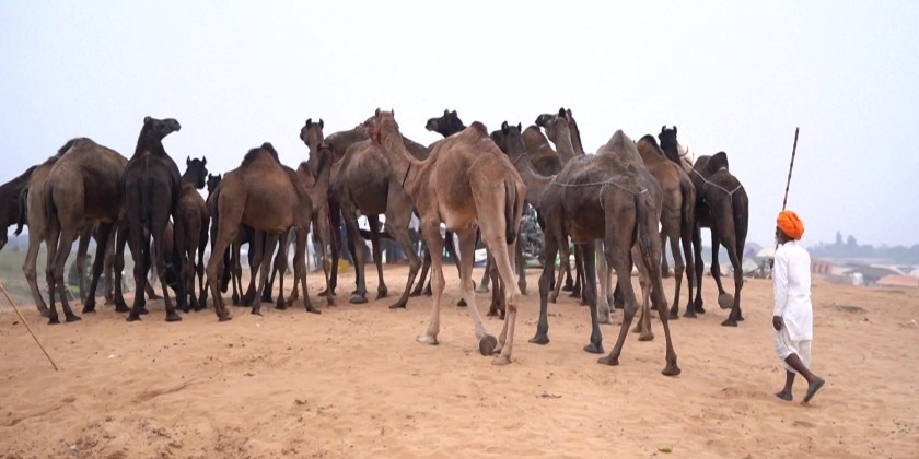 Hundreds of herders with flocks of camels are gathering in the desert city of Pushkar for India's biggest camel-trading fair. The week-long livestock market runs from October 22 to November 5 where camels, horses, and cattle are traded alongside religious and spiritual activities.