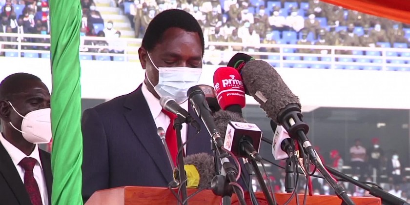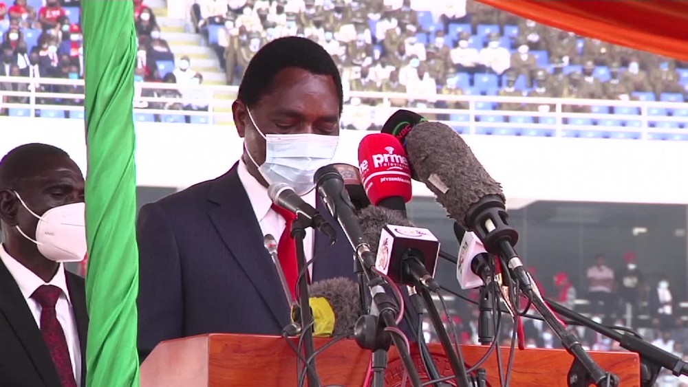 Zambia's new president, longtime opposition leader Hakainde Hichilema, was sworn into power on Tuesday. Hichilema vowed to deliver a "united, prosperous and equitable Zambia." Celebrations engulfed the stadium, filled to its 60,000 capacity, while Hichilema took his oath before inspecting a military guard of honour and as air force jets flew overhead.