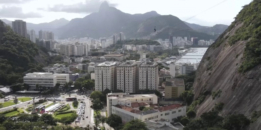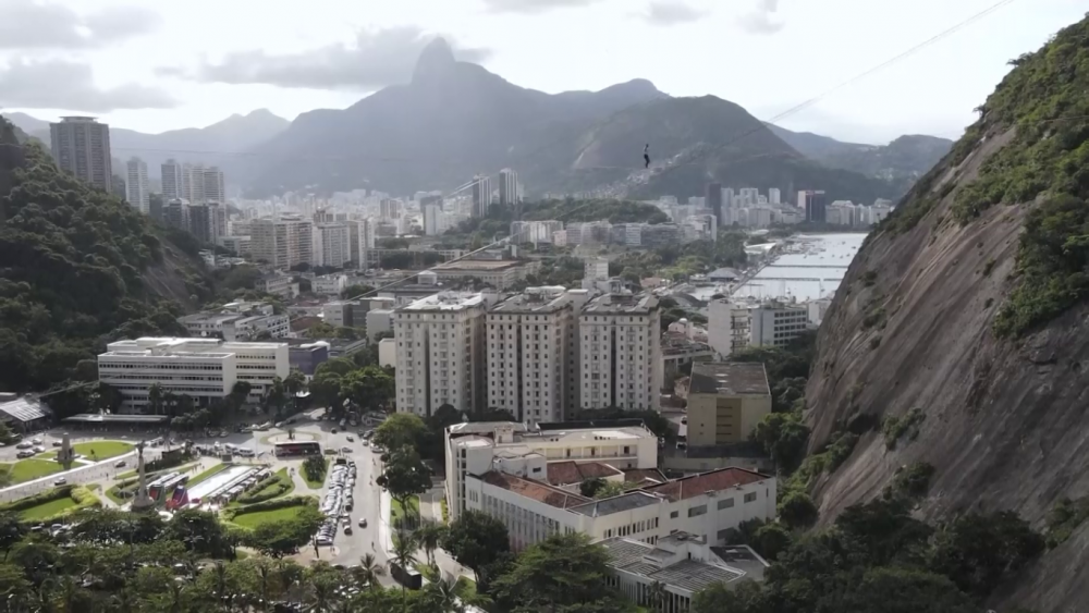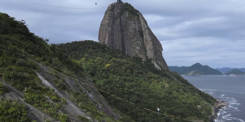 A French slackliner crossed between Babilonia Hill and Urca Hill in Rio de Janeiro on Saturday on a bridge of webbing - known as a slackline.