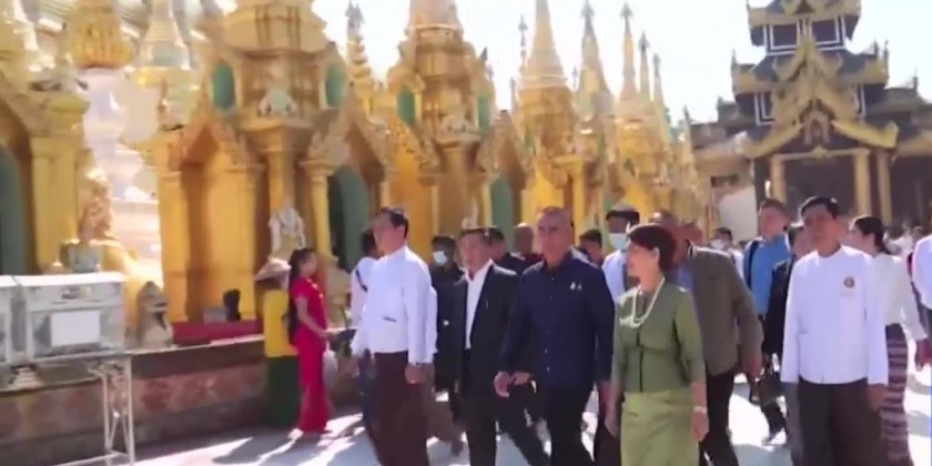 The Thai high-level delegation was seen off by Yangon Command Commander Maj-Gen Nyunt Win Swe and wife, senior military officers and wives, the military attachés of the Royal Thai Armed Forces (Army, Navy and Air) to Myanmar and wives, and officials. The high-level delegation paid homage to Shwedagon Pagoda and Chaukhtetkyee Pagoda where they made donations, and visited Bogyoke Aung San Market Saturday morning.