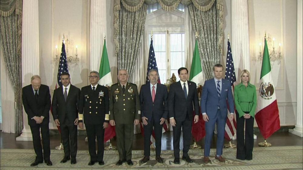 A high-level Mexican delegation, including Foreign Minister, Security Minister, and Defense Minister, visits Washington for talks with US counterparts, including Secretary of State Marco Rubio, Secretary of Defense Pete Hegseth, and Attorney General Pam Bondi.