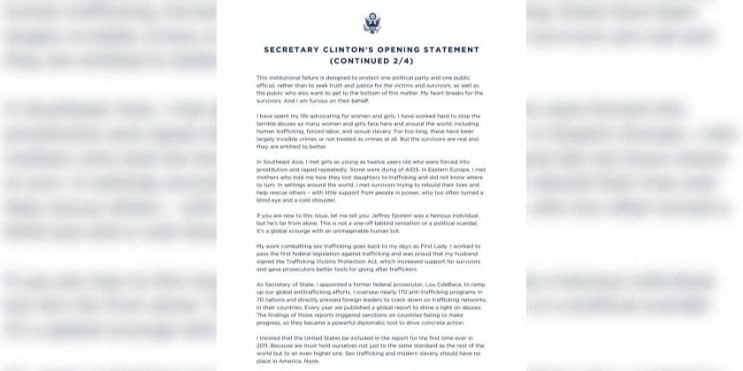 The House Committee on Oversight and Government Reform held the closed-door hearing in New York, which is the state where the Clintons reside. The committee is led by the Republican Party. Clinton released a statement before the hearing saying she does not recall ever meeting Epstein and that the Republicans are compelling her to testify "to distract attention" from President Donald Trump. Her husband, former President Bill Clinton, is set to give his own testimony on Friday.