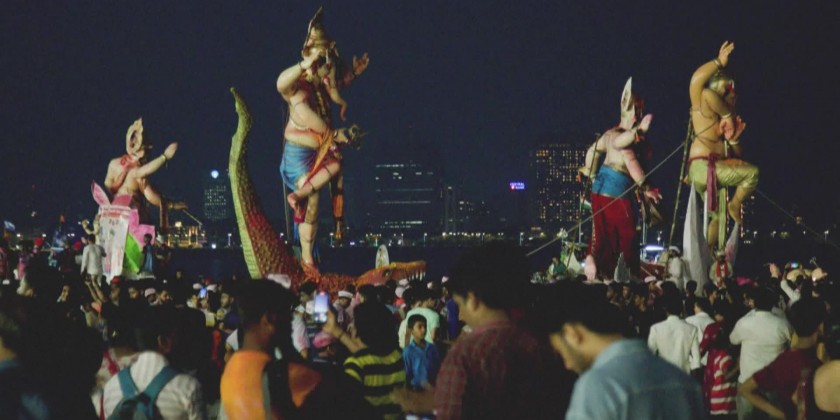 The annual Ganesha Chaturthi festival in Mumbai is a grand spectacle of devotion and celebration. Every year, thousands of beautifully adorned Ganesha idols, ranging in sizes from one feet to forty five feet, are carried through the city's vibrant streets, accompanied by lively music and enthusiastic devotees dancing to the beats.