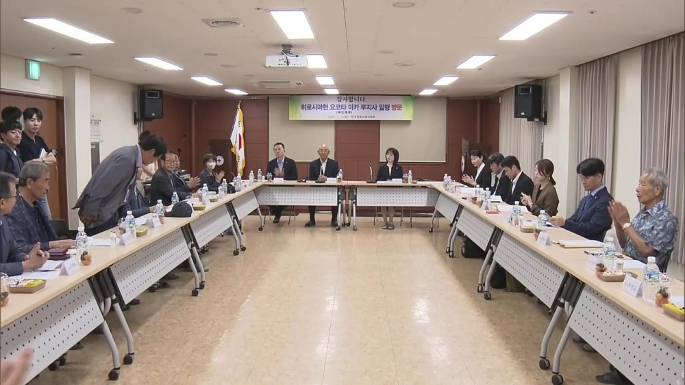 Yokota sat town for talks with atomic bomb survivors, known as hibakusha, and children of those exposed to the blasts. Some survivors shared their experiences in Hiroshima, while others said little progress has been made toward the abolition of nuclear weapons. After the meeting, Yokota said she was able to hear the South Korean survivors' experiences and thoughts for the first time.