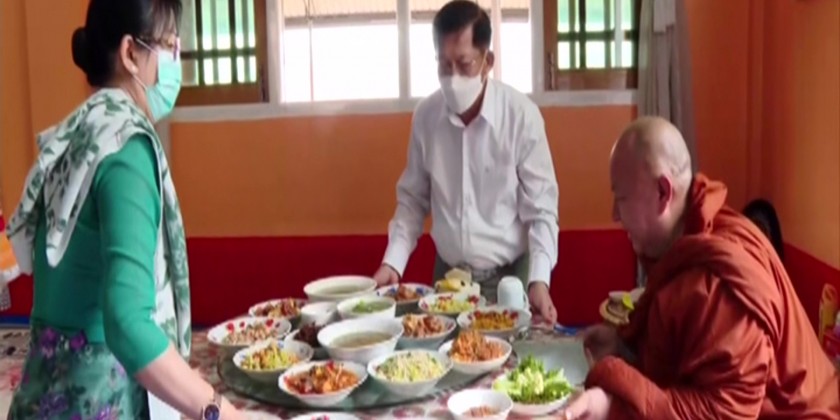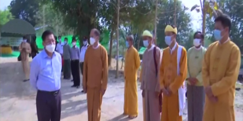 The Prime Minister and party later visited Thiri Mingala Manhsu Shan Monastery and paid respect to the residing Sayadaw. They also donated day meal to the Sayadaw and 100 members of Sangha who are learning religious scriptures at the monastery.