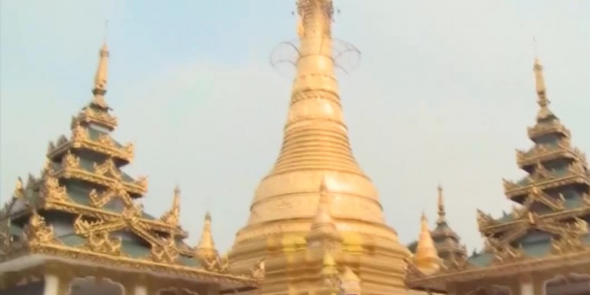 The fifth time circular gold foil offering of historic Maha Dammaranti Eain Taw Yar pagoda and libation ceremony was held at Yadana Beikmandawgyi on the pagoda platform on 7th April.