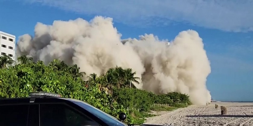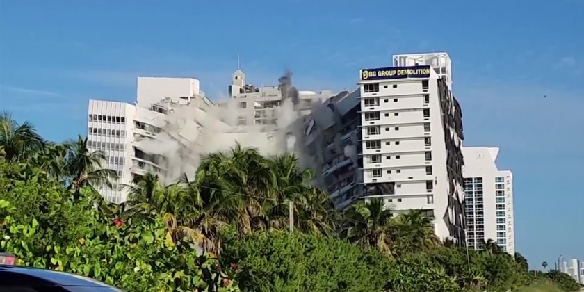 A once-luxurious Miami Beach hotel that hosted the Beatles and President John F. Kennedy during its 1960s heyday has been imploded.The 17-story Deauville Hotel fell into itself Sunday after a series of explosions were set off, sending up a large cloud of dust.