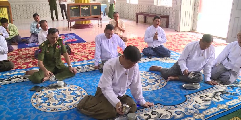 The Chief Minister and officials visited Sun Rise Sima or ordination hall in Patheingyi Township, Noon Sima in Chan Aye Tharzan Township, Sun Set Sima in Aung MyayTharzan Township and Midnight Sima in Pyigyidagun Township, paid homage to the Buddha images venerated in those Simas, offered candle light and water, viewed round the inside and outside of the precinct of Simas and gave necessary instruction for the cleaning to the officials and fulfilled requirements.